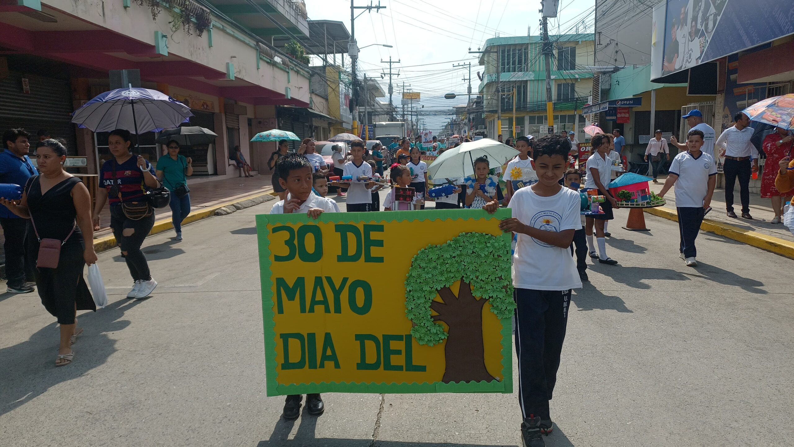 Diferentes instituciones desfilan por las calles de El Progreso, conmemorando el día del medio ambiente, tratando de llevar conciencia a los demás pobladores. Diferentes instituciones demuestran su preocupación por nuestro planeta, por lo tanto el objetivo de este desfile es la concientización del cuidado de nuestro ambiente.