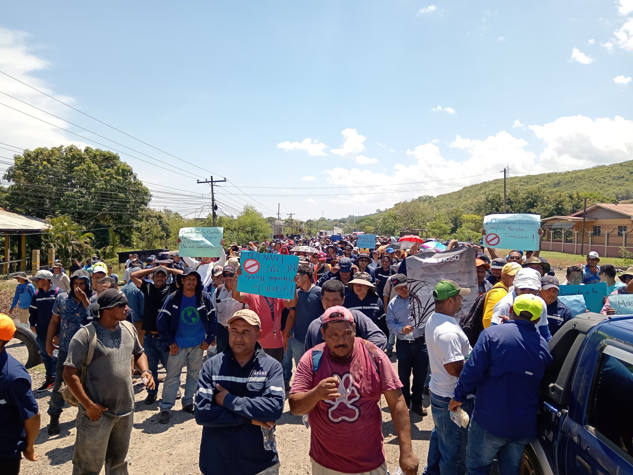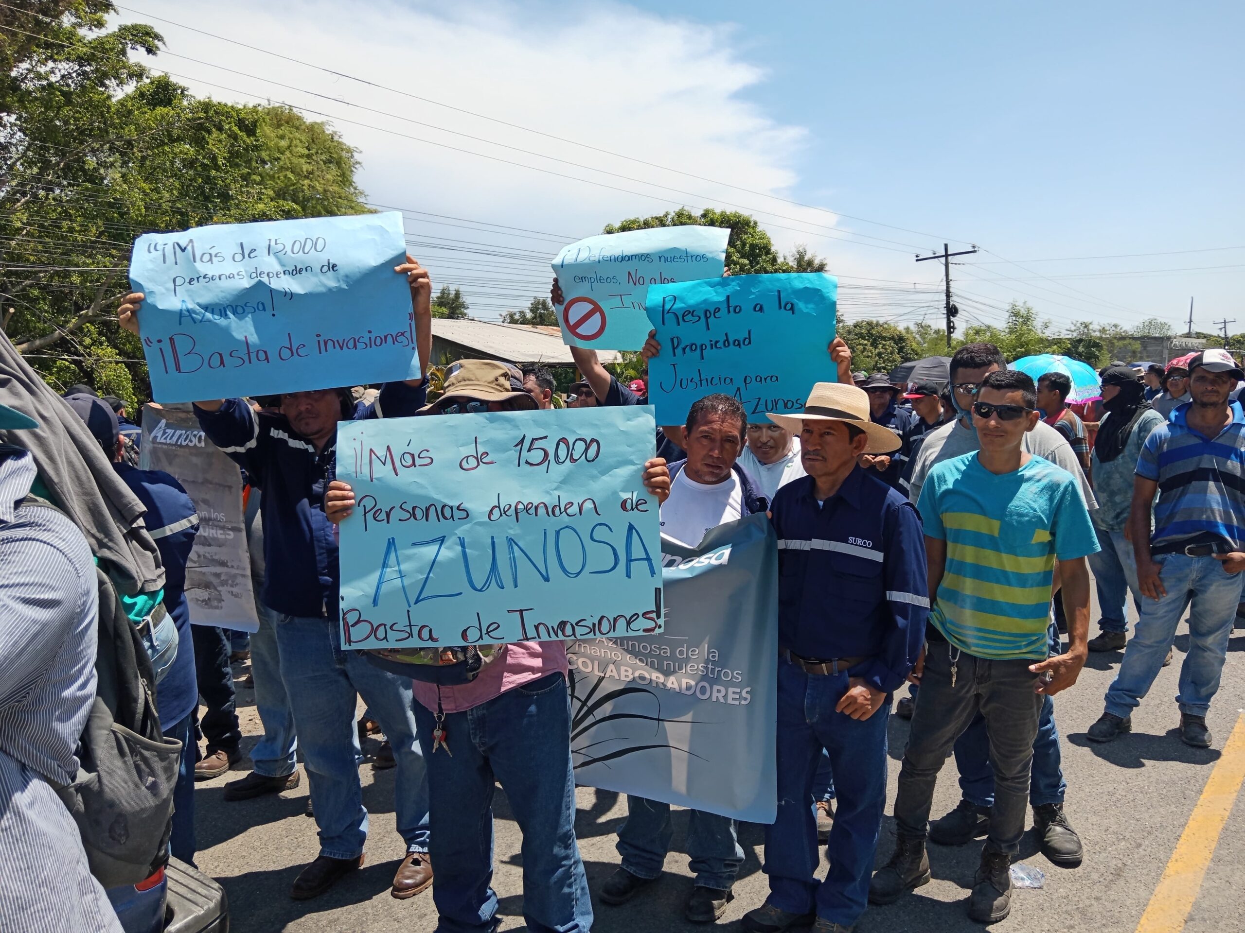 Mas de 300 empleados protestan de forma pacifica, exigiendo el derecho para trabajar, ya que hay manzanas invadidas y eso evita que la empresa trabaje.