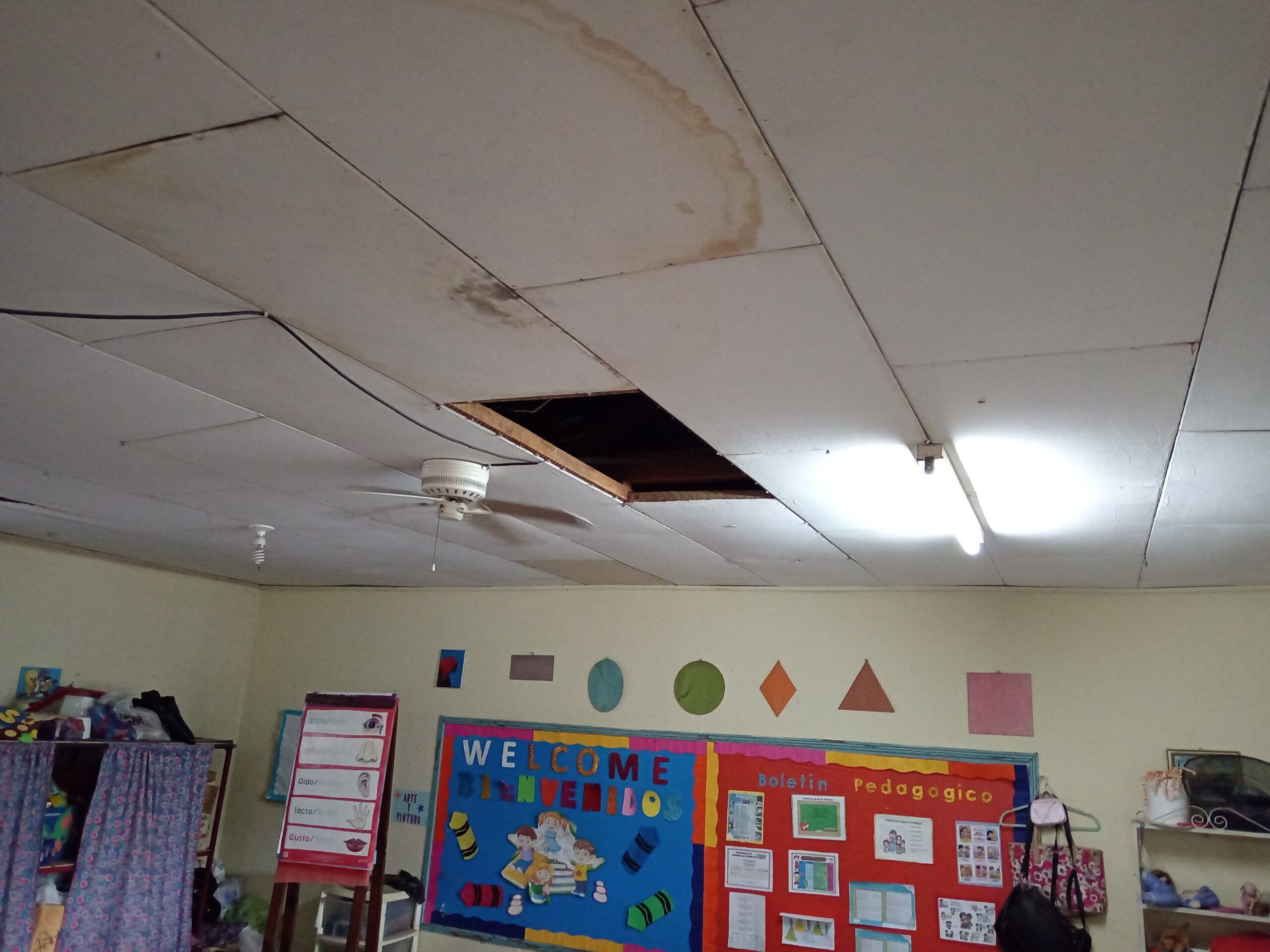 Los maestros denuncian que las instalaciones de el Kínder ya que el techo de dicha institución esta levantado y en malas condiciones, esto preocupa a la docencia ya que cuentan con 35 alumnos que incluso algunos vienen saliendo de maternal. Todos los techos de las instalaciones están dañados, no se hace una reparación desde 1994.