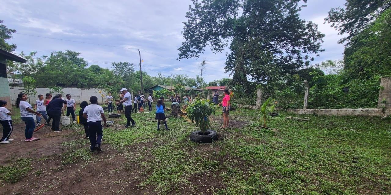 Se están realizando trabajos de limpieza para erradicar el zancudo transmisor del dengue en la escuela Moisés Aguilar.