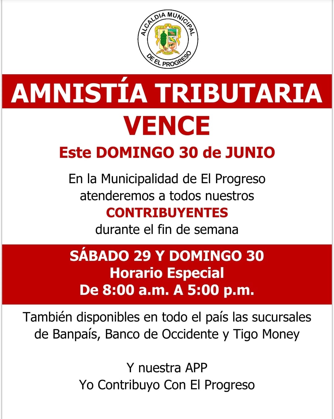 La amnistía tributaria, vence el 30 de Junio. La amnistía tributaria representa una condonación de todas las multas al primero de diciembre del 2023.