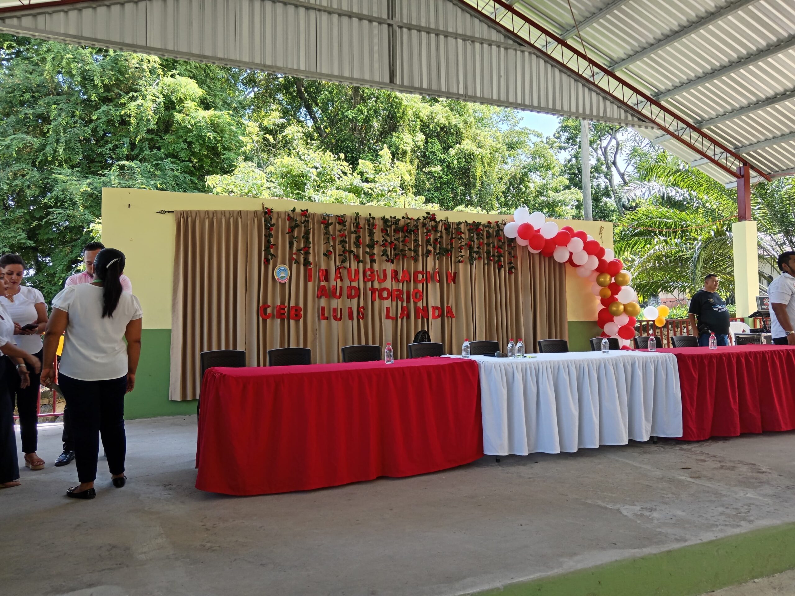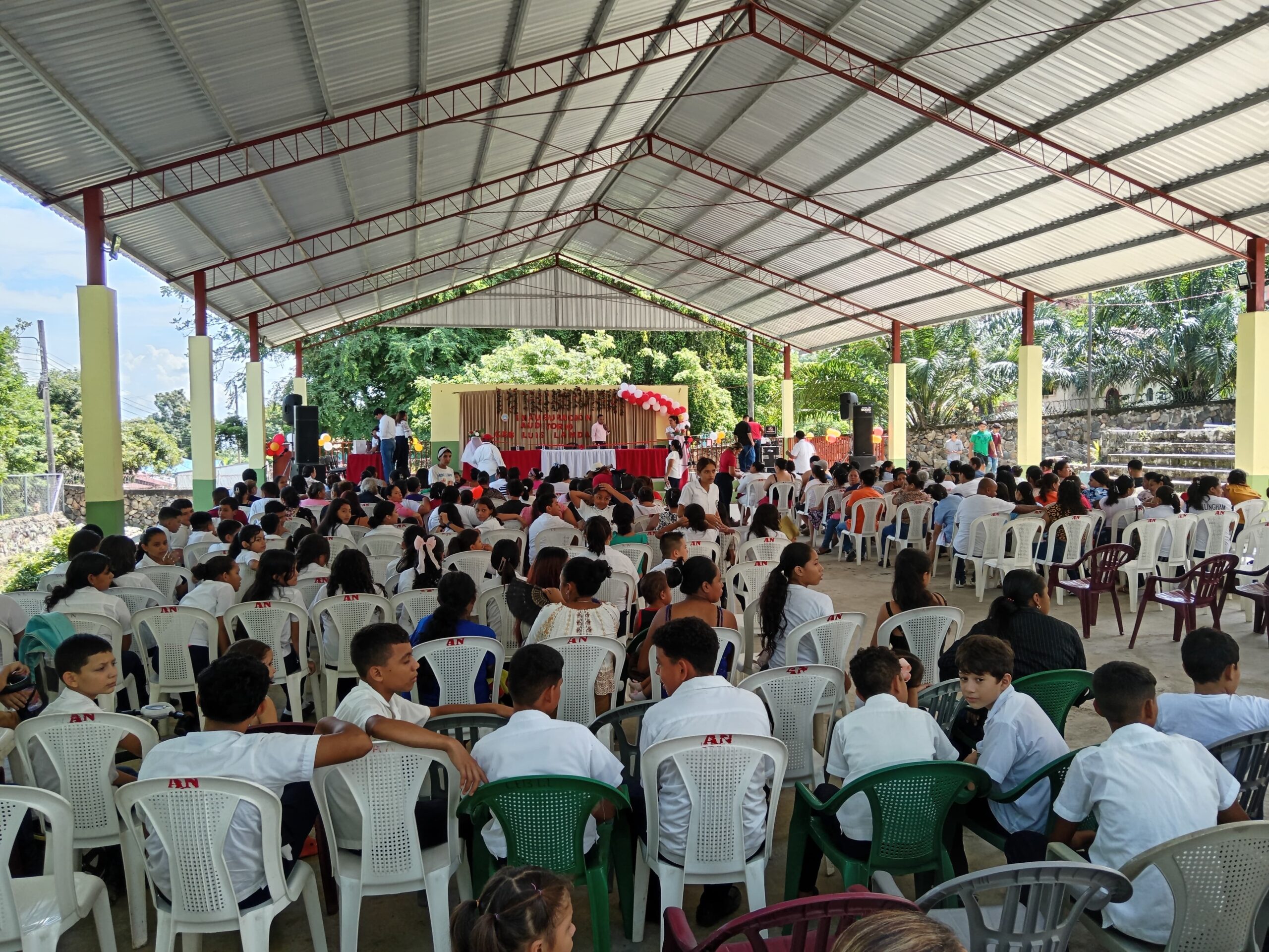 El día de hoy se inaugura el auditorio en el centro de educación básica luis landa, hay presencia de varios padres de familias con los alumnos, están contentos por este evento.