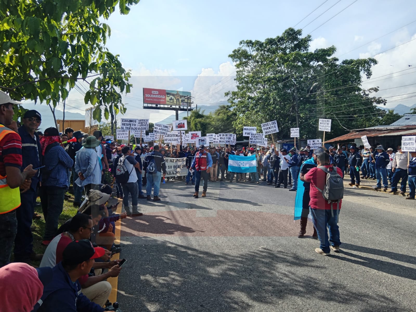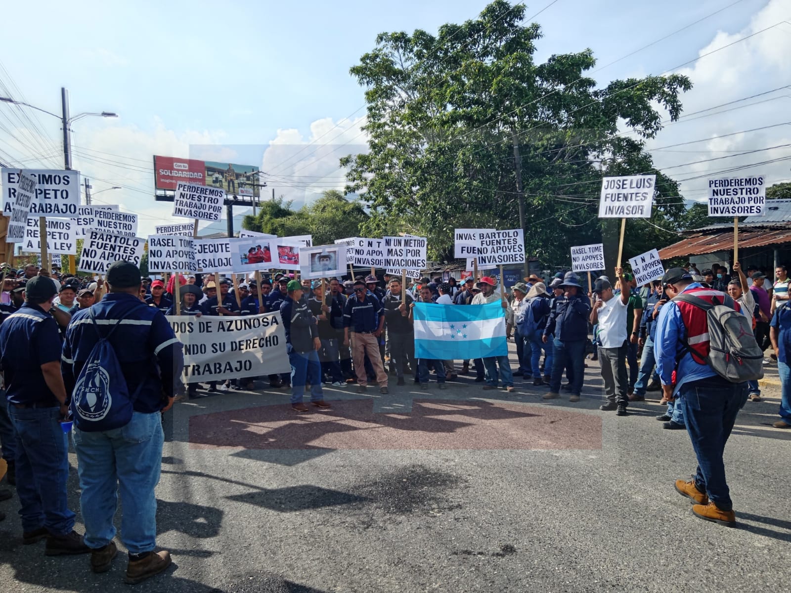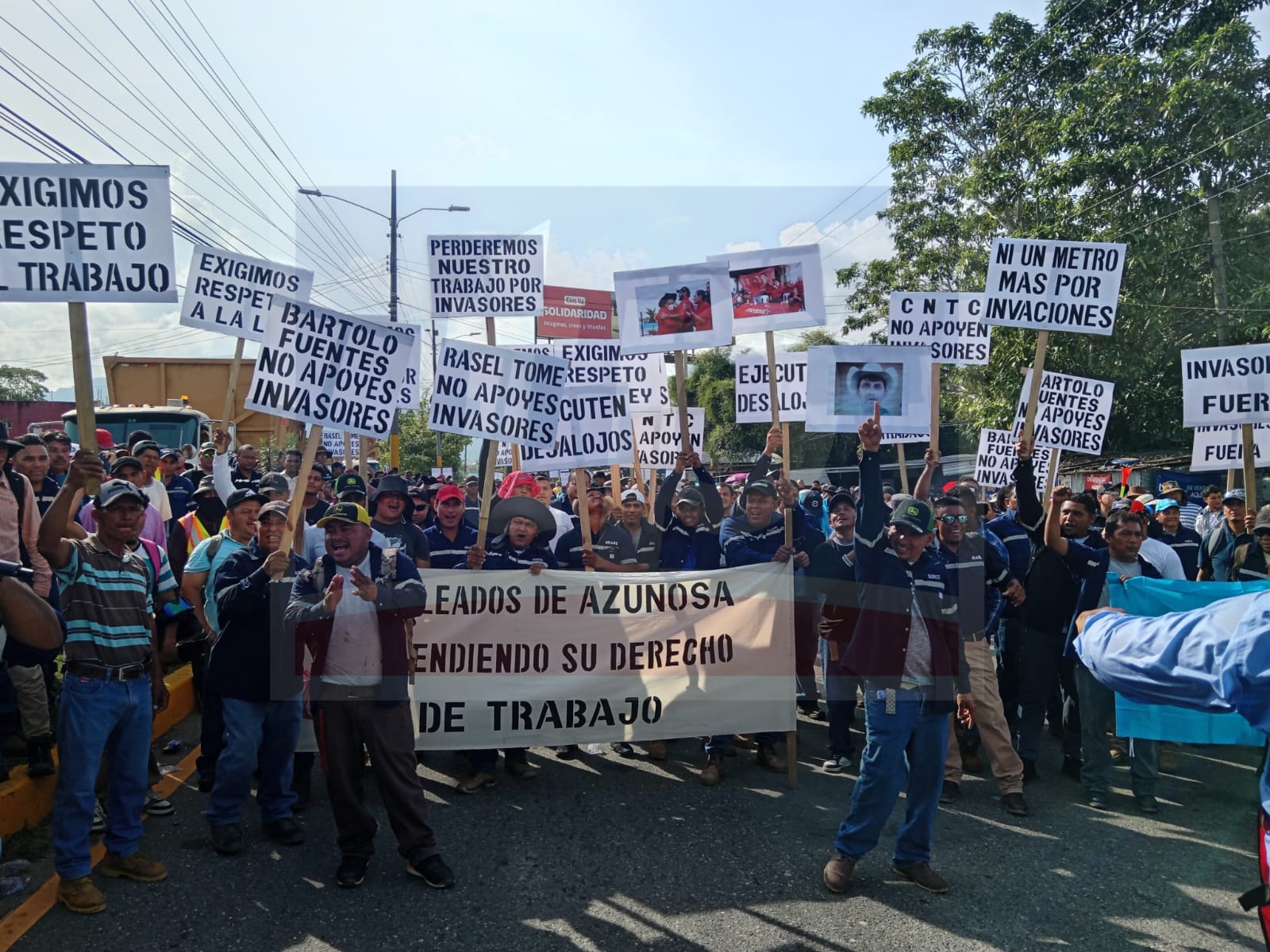 Empleados de azucarera del Norte se encuentran manifestándose a la altura del puente la democracia, exigiendo el respeto al derecho a su trabajo.