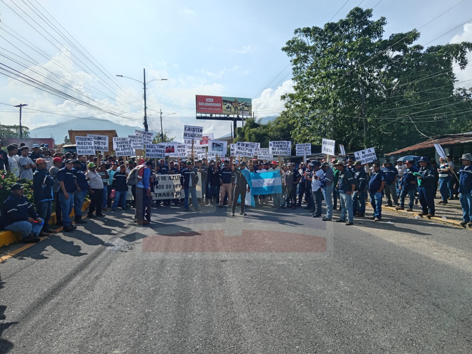 Empleados de azucarera del Norte se encuentran manifestándose a la altura del puente la democracia, exigiendo el respeto al derecho a su trabajo.