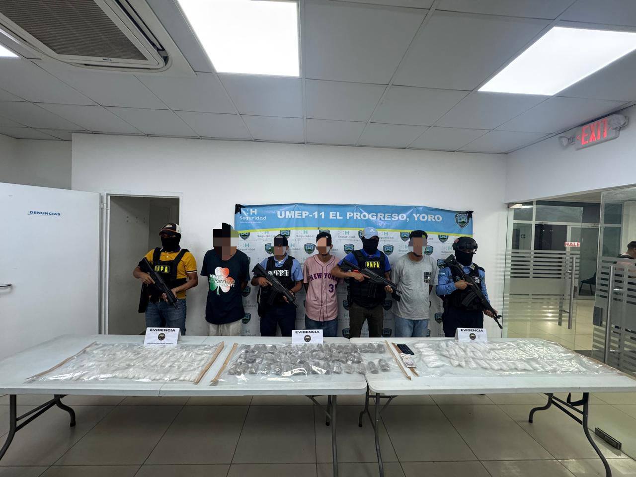 La Dirección Nacional Policial Antidrogas (DNPA), en un operativo conjunto con agentes de investigación, prevención y la UMEP-11, logró la captura de tres individuos vinculados a delitos de tráfico de drogas en la colonia Las Glorias del municipio de Santa Rita, Yoro.