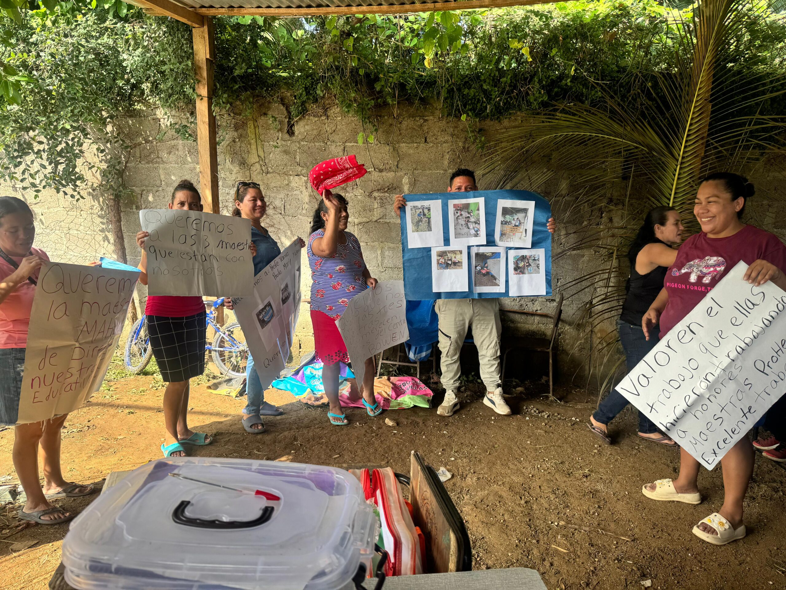 Una de las razones por las que los afectados no quieren la remoción de las maestras es porque ellas estuvieron “bajo lluvia y sol”, debido a que la infraestructura del centro educativo es de nailon, bambú y láminas viejas.