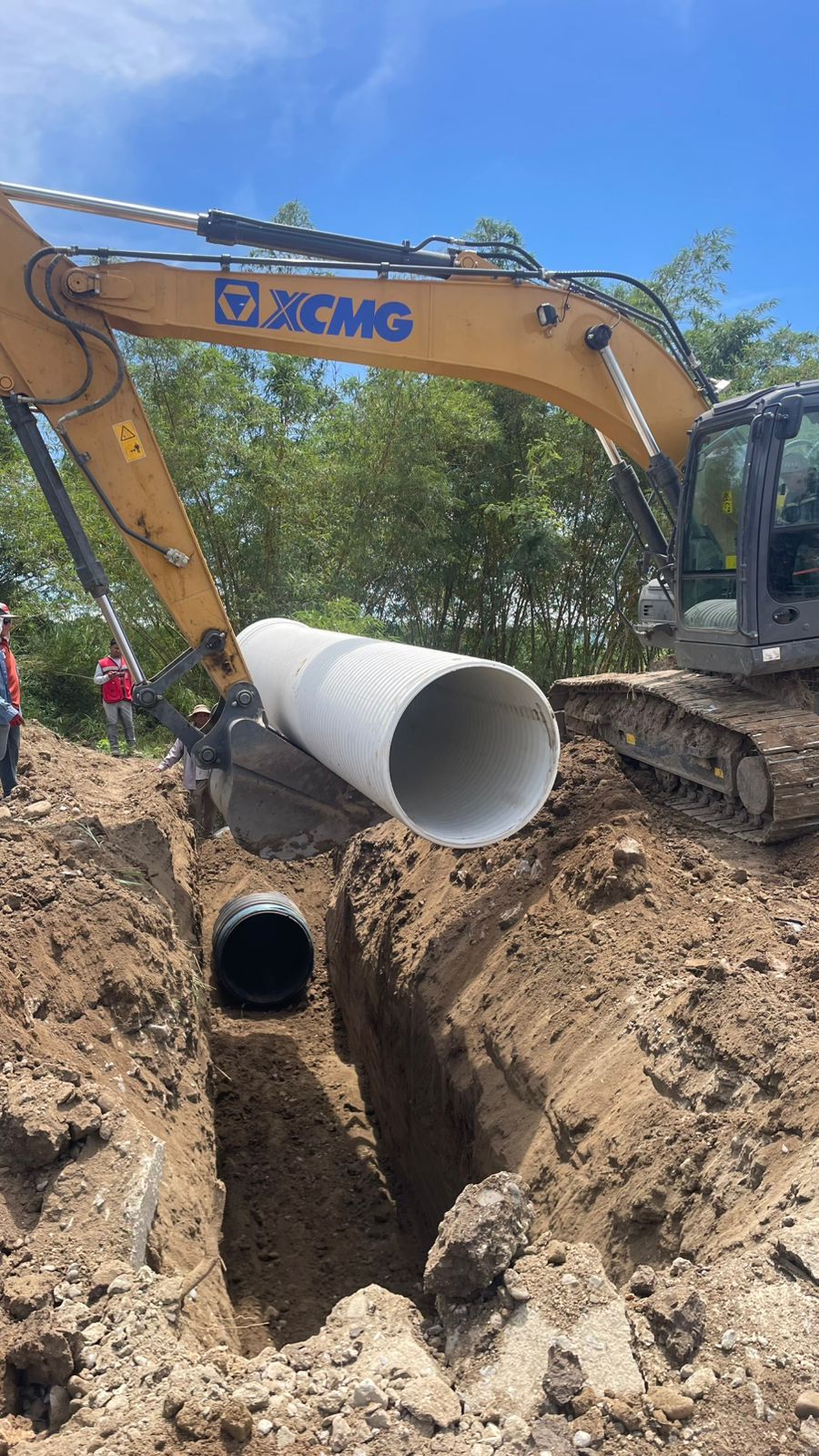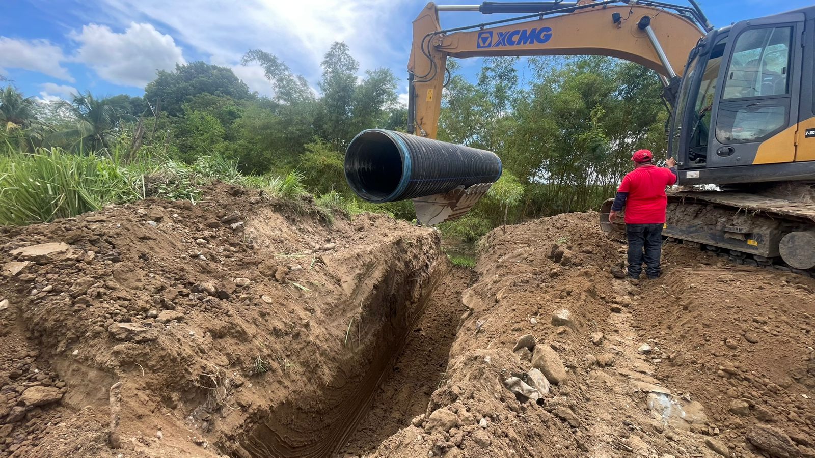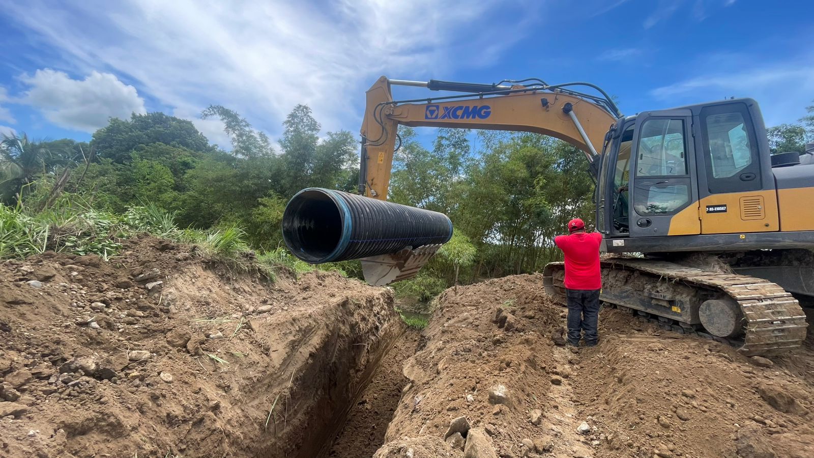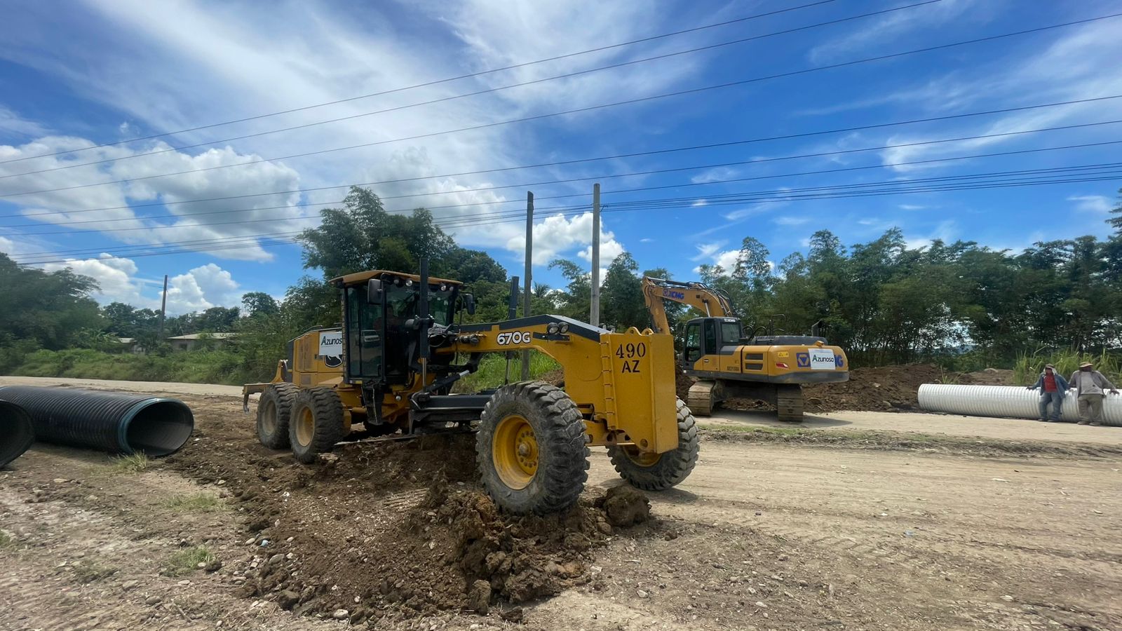 👉 Como parte de este esfuerzo, se instalaron 4 alcantarillas de 36 pulgadas. Una fue donada por Azunosa, y también pusimos a disposición nuestra motoniveladora y excavadora para apoyar en todos los trabajos.
